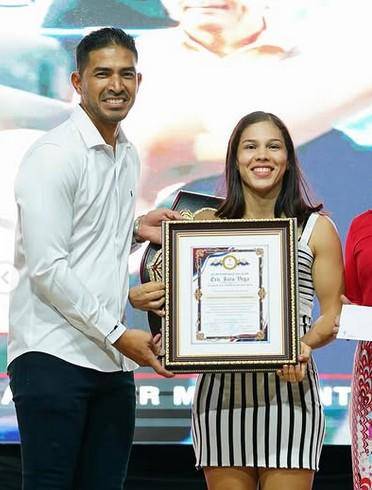 En el marco de las celebraciones de las Patronales de Santiago, en Veraguas, autoridades de la alcaldía de esa localidad entregaron un reconocimiento a la boxeadora veragüense Nataly Delgado, campeona mundial interina del peso supermosca de la AMB.