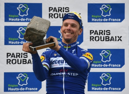 Detrás del dúo que se disputó la victoria en el Velódromo de Roubaix, el campeón de Bélgica Yves Lampaert se hizo con la tercera plaza (a 13 segundos) y completó el triunfo del equipo Deceuninck, en una jornada soleada pero fría.