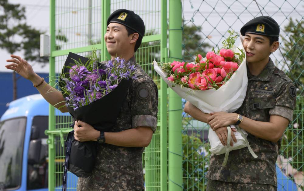 Dos megaestrellas de BTS concluyen el servicio militar en Corea del Sur