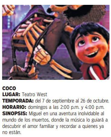 Mientras, para quienes buscan compartir en familia, las obras infantiles y familiares como: “Mi Villano Favorito” y “Coco” se llenan de música, color y mensajes educativos que entretienen y enseñan al mismo tiempo.