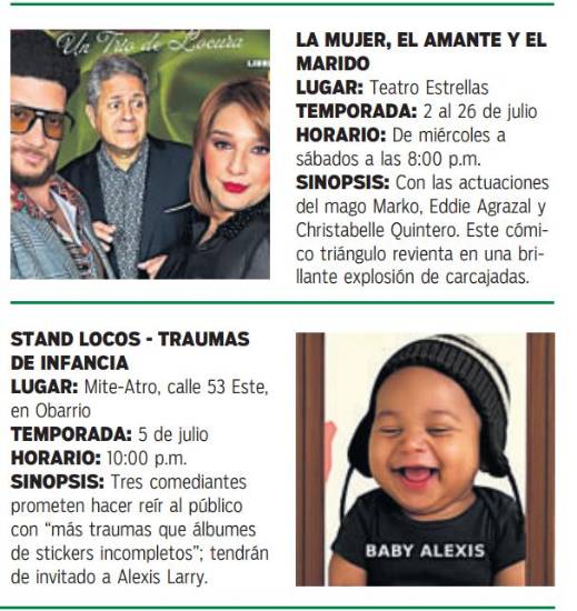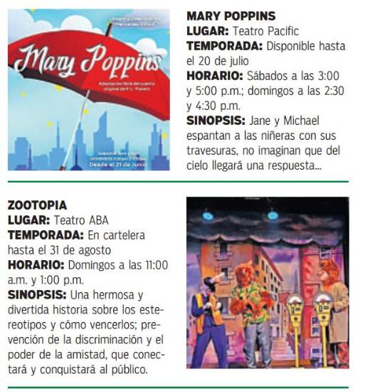 Además, estrena “Si no me acuerdo, no pasó”, “Noche de boda”, “La mujer, el amante y el marido”, “Stand Locos - Traumas de infancia”; mientras, “Mary Poppins” y “Zootopia” siguen en las tablas.