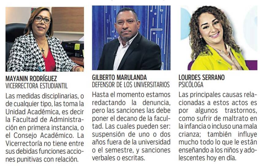 Además, Marulanda agregó que se está haciendo el trámite pertinente de la denuncia que será remitida al decano Franklin Castillo, a quien contactamos y aseguró que como autoridad fue quien asesoró al estudiante para interponer la denuncia pertinente.