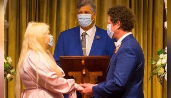 Sin embargo, se les permitió quitarse los guantes para el intercambio de anillos y las mascarillas para el beso tradicional.