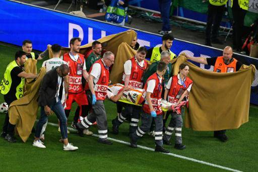 Después de varios segundos de tensión, los servicios de emergencia saltaron al césped para evacuarlo y el jugador recibió una ovación de la grada de aficionados húngaros, la más cercana al incidente, mientras abandonaba el terreno de juego en camilla.