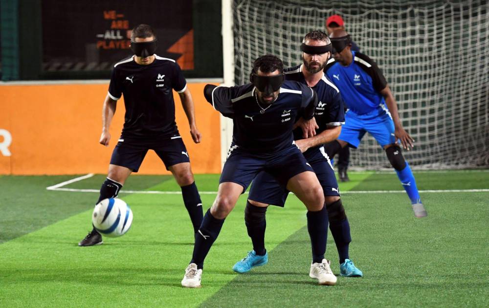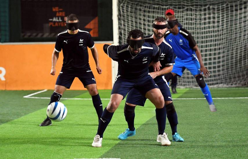 ML | El futbol para ciegos, conocido como Futbol 5, es una disciplina paralímpica que ha sido adaptada del fútbol para personas con discapacidad visual, clasificados dentro de la clase B1, que incluye a aquellos con una agudeza visual extremadamente baja o sin percepción de la luz. Durante el partido, se requiere que los espectadores guarden silencio para permitir que los jugadores se concentren en los sonidos del balón y las indicaciones de sus compañeros y de un guía detrás de las porterías.