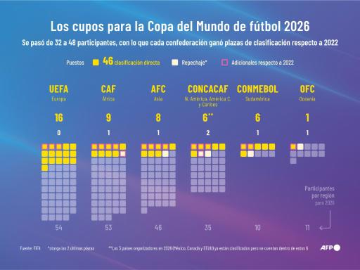 La Copa del Mundo que se disputará del 11 de junio al 19 de julio de 2026 será la primera edición en la que participen 48 equipos, distribuidos en 12 grupos de cuatro selecciones cada uno, con la novedad de organizarla en tres países: Estados Unidos, México y Canadá.