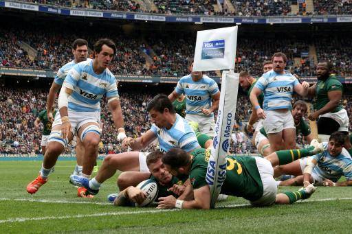 Los forwards sudafricanos dominaban y se mostraban peligrosos adelante, pero Argentina aprovechó en esa primera mitad los numerosos errores atrás de los Sproingboks.