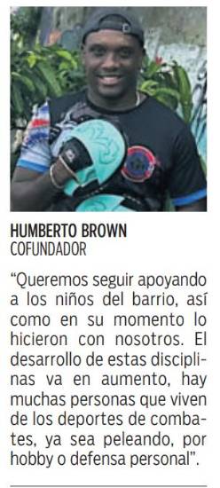 ”Actualmente, se cobra dependiendo de la clase que se desee tomar, ya sea privada o grupal. También organizamos eventos de grappling, Muay Thai y lucha olímpica. Nuestras metas son fomentar y masificar el deporte de combate para poder llevar a nuestros atletas al más alto nivel, como lo hizo Humberto Brown, y para eso estamos trabajando. Les inculcamos a los chicos que, por medio del deporte, se puede conocer el mundo y que también deben combinarlo con los estudios para que sean alguien y no uno más del barrio”, expresó Eltom Brown, cofundador del club.