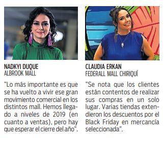 Por su parte, Claudia Erkan, gerente de mercadeo de Federal Mall Chiriquí, manifestó que “tras la situación que vivimos por los cierres, hemos tenido una aceptación muy buena, a tal nivel que extendimos el horario hasta las 9:00 p.m.” Erkan agregó que “hemos recibido una cantidad increíble de clientes”, y adelantó que pronto tendrá las aperturas de nuevas tiendas.
