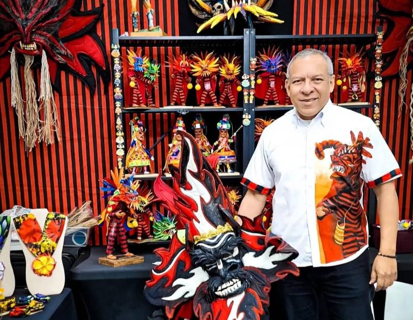 Alexander Alarcón es el artesano detrás de 10 Arts, un emprendimiento dedicado a la creación y venta de estatuillas de diablos, reinas congo, montunas, polleras de gala y mujeres gunas, además de confeccionar máscaras de diablos pequeñas para collares y aretes.