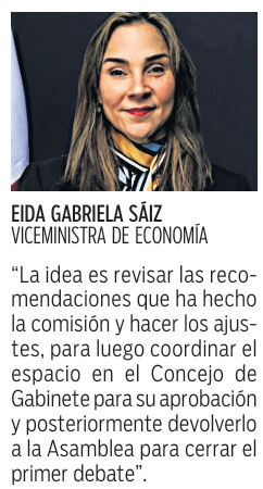 Por su parte, la viceministra de Economía, Eida Gabriela Sáiz, indicó que ayer se recibirían las recomendaciones de los comisionados del Órgano Legislativo.