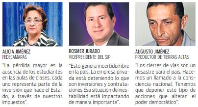 Representantes de diversos sectores de la economía expresaron que se debe garantizar el libre tránsito en todas las vías. Aseguraron que reconocen “el derecho a protestar”, pero debe darse “sin alterar el orden público y sin interrupciones”