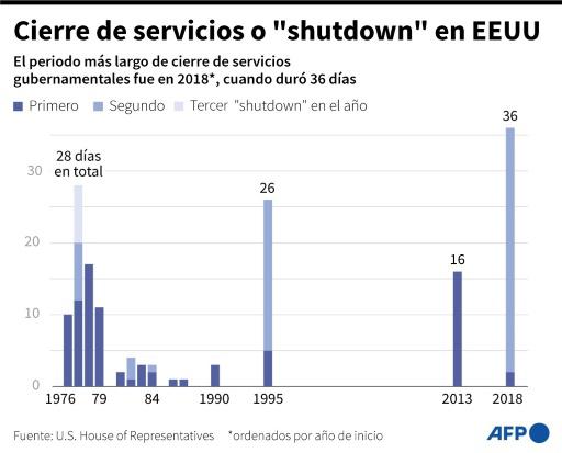Ni el Senado, controlado por los demócratas, ni la Cámara de Representantes, controlada por los republicanos, lograron aún aprobar un proyecto de ley para prorrogar el presupuesto federal que expira este sábado a la medianoche (04H00 GMT del domingo).