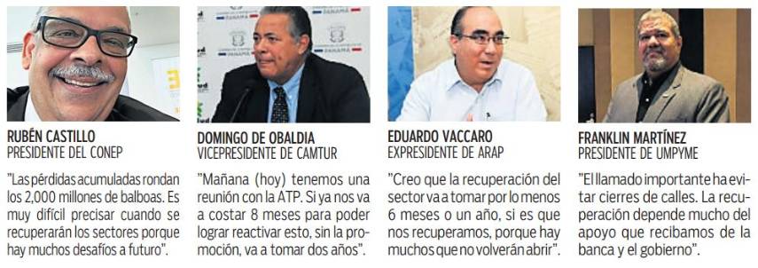 En tanto, Franklin Martínez, presidente de la Unión Nacional de Pequeñas y Medianas Empresas (UNPYME), afirmó una recuperación “depende mucho de cuanto es el apoyo de la banca local y del gobierno. En este momento, la banca está llamando a las personas para cobrarle”.