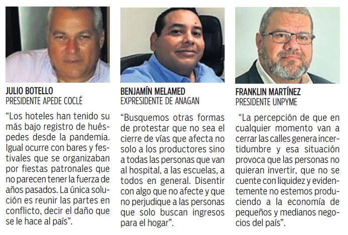 Ahmed Elneser, vicepresidente de la Cámara de Comercio, Industrias y Agricultura de Colón, dijo que “las personas no quieren venir por seguridad y temor a los cierres. Entonces se afecta todo, el turismo, la hotelería, los restaurantes, el comercio y los paseos turísticos. El viajero o el visitante prefiere no venir a una zona donde en cualquier momento le cierran la calle o queda en medio de una acción violenta”.