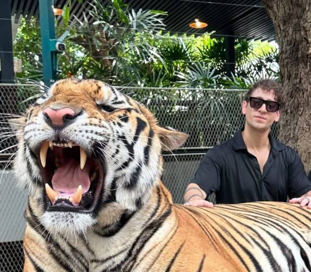 El que está disfrutando de arriba a abajo su estadía en Tailandia, es el Dj Gian Varela. Hace días lo vimos comiendo insectos y ahora su madre compartió una foto del músico junto a un gran tigre de bengala. ¡Qué susto!