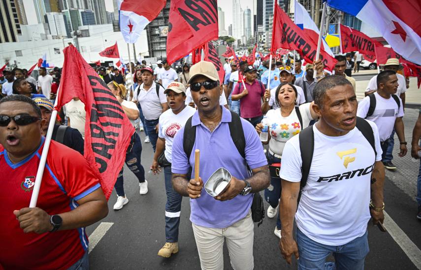 En tanto, miembros del Suntracs protestaron frente al hotel Sheraton, donde se llevaba a cabo el Consejo de Ministros de Trabajo de Centroamérica y República Dominicana, por lo que fueron desalojados por agentes de la Unidad del Control de Multitudes.
