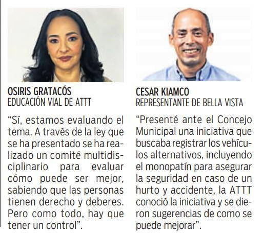 Osiris Gratacós, de la Dirección de Educación Vial de la Autoridad de Tránsito y Transporte Terrestre (ATTT), expresó: “hay que reconocer que el monopatín es parte de la micromovilidad activa que en otros países se incentiva, pero de manera ordenada, porque las personas que utilizan este medio de transporte lo que buscan es evitar el congestionamiento vehicular, lo que tiene sus ventajas y desventajas”.