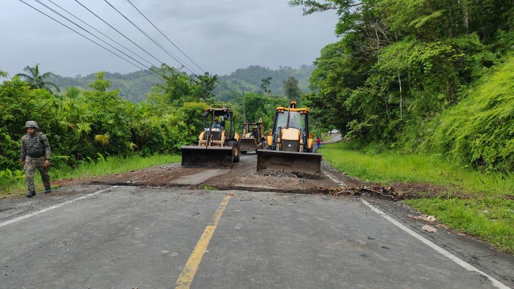 La vía estaba bloqueada con árboles derribados para impedir el paso. Personal de la Fuerza Pública, con el apoyo de los residentes, se encuentra removiendo los escombros.