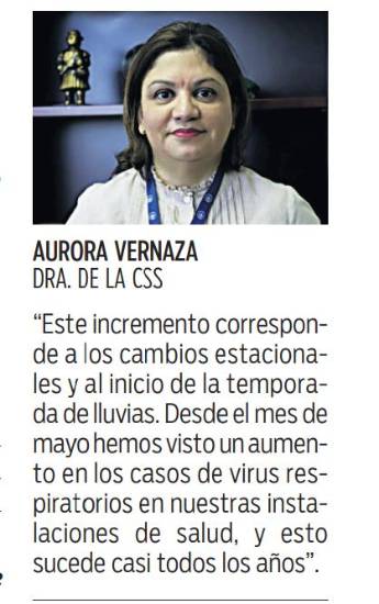 En días pasados las autoridades de Salud de la Caja de Seguro Social (CSS) reportaron aumento de las hospitalizaciones por casos de virus respiratorios. La Dra. Aurora Vernaza, coordinadora nacional del servicio de Urgencias, indicó que “este incremento corresponde a los cambios estacionales y el inicio de la temporada de lluvias”.