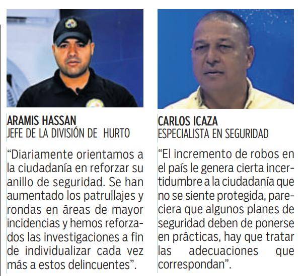 “Diariamente orientamos a la ciudadanía en reforzar su anillo de seguridad. Se han aumentado los patrullajes y rondas en áreas de mayor incidencias y hemos reforzados las investigaciones a fin de individualizar cada vez más a estos delincuentes”.