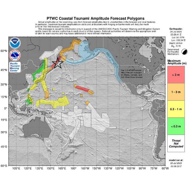 Las autoridades informaron la emisión de una alerta de tsunami para Centroamérica, incluyendo Panamá, tras un sismo de magnitud 8.8 registrado en Kamchatka, Rusia, en la costa del Pacífico, según la USGS.