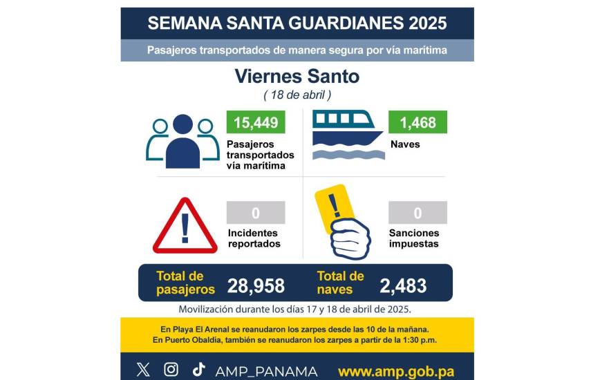 Cerca de 29 mil personas se han movilizado vía marítima este Jueves y Viernes Santo, informó la Autoridad Marítima de Panamá (AMP).