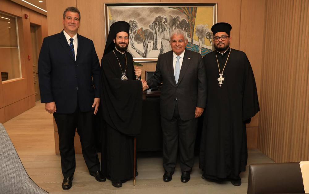 En el encuentro de coordinación con el mandatario Mulino, quien dijo sentirse complacido con esta reunión, participaron además H.S. Panagiotis Lymberopulos y Alejandro El Brihi, Protopresbítero, párroco de la Catedral Griega de Panamá y presidente del Comité Ecuménico de Panamá