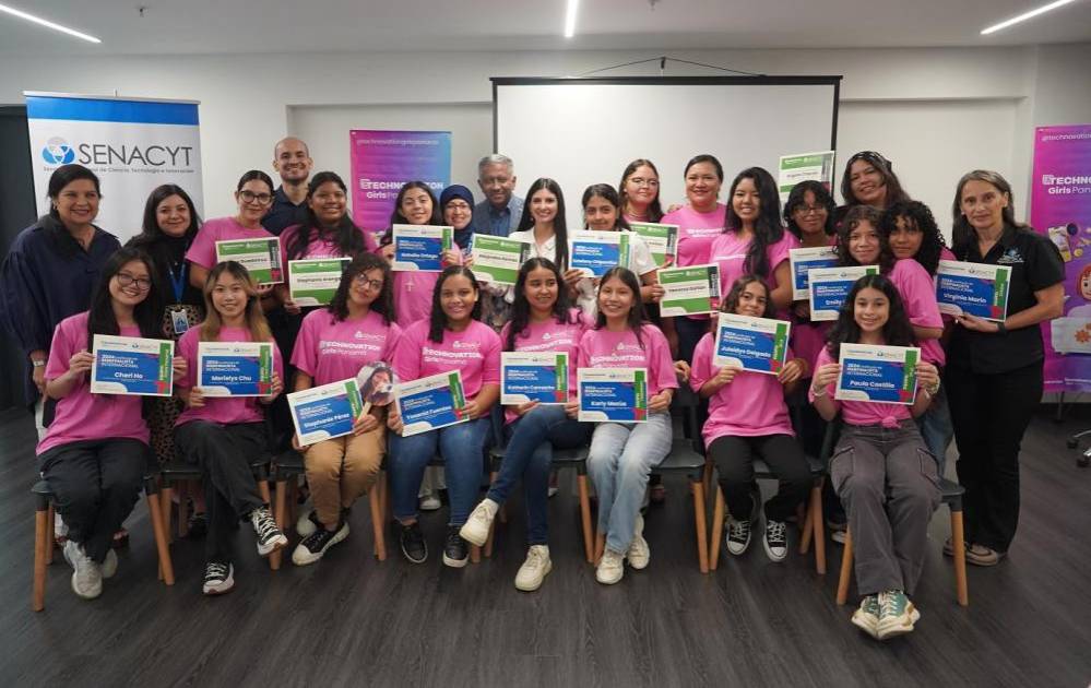 Como cierre de la edición 2024 de Technovation Girls, la Senacyt organizó un acto de reconocimiento en el que participaron las integrantes de los cinco proyectos semifinalistas que asumieron el desafío de programar aplicaciones móviles y utilizar la inteligencia artificial para abordar problemáticas en sus comunidades.